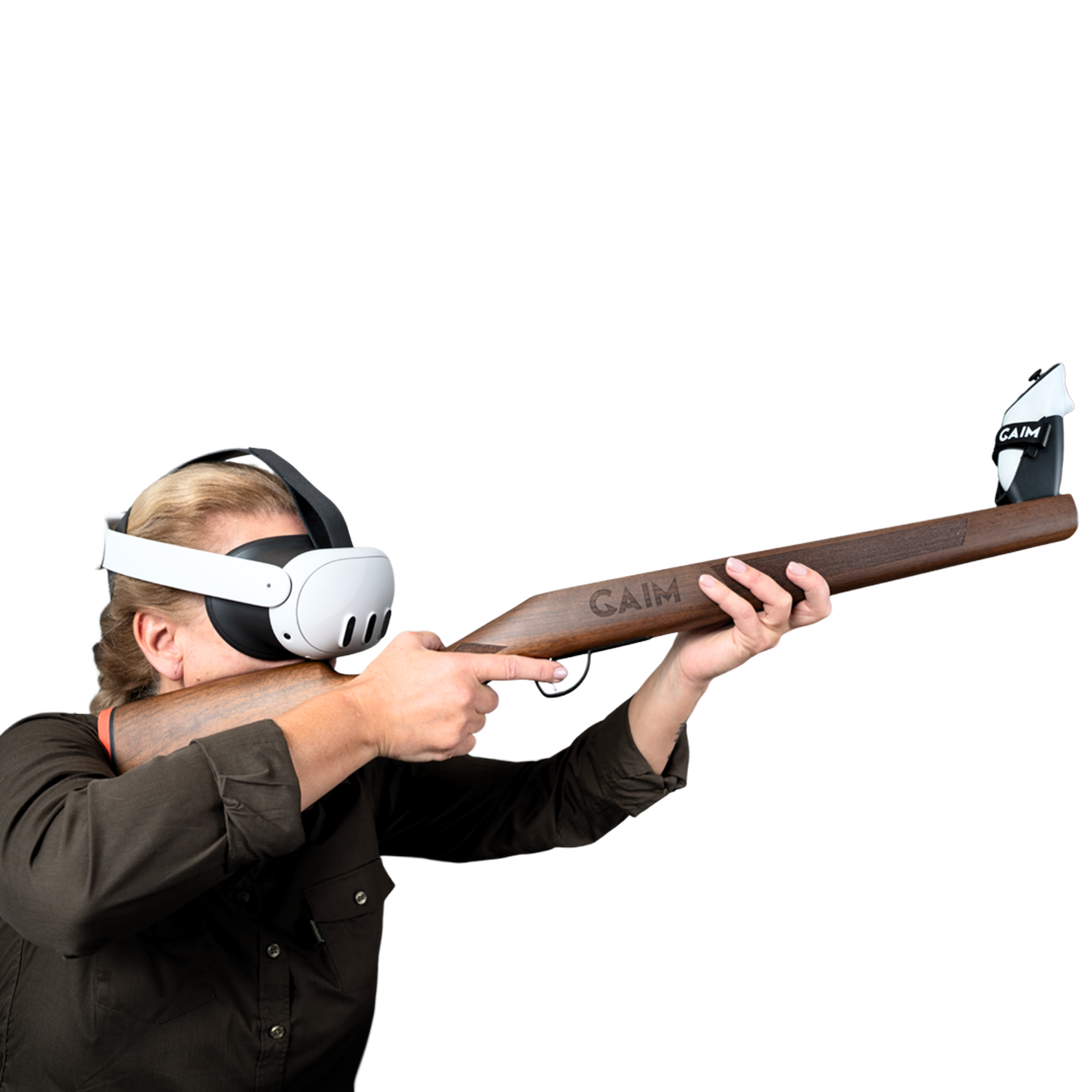 Ihr am GAIM Wooden Rifle befestigter Meta-Quest-Controller sorgt für ein präzises Tracking Ihrer Gewehrpositionen und -bewegungen. In der GAIM-App können Sie die Positionierung weiter kalibrieren und auf Ihr Schießverhalten einstellen.